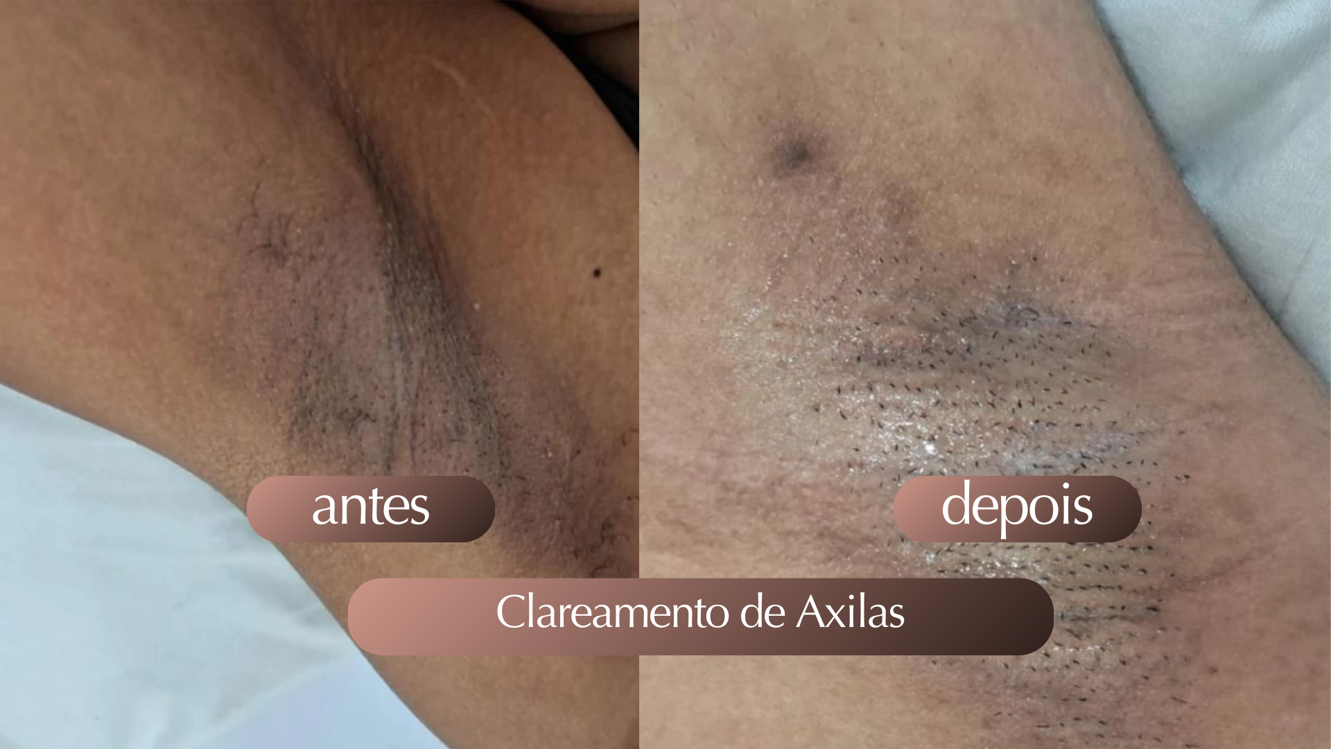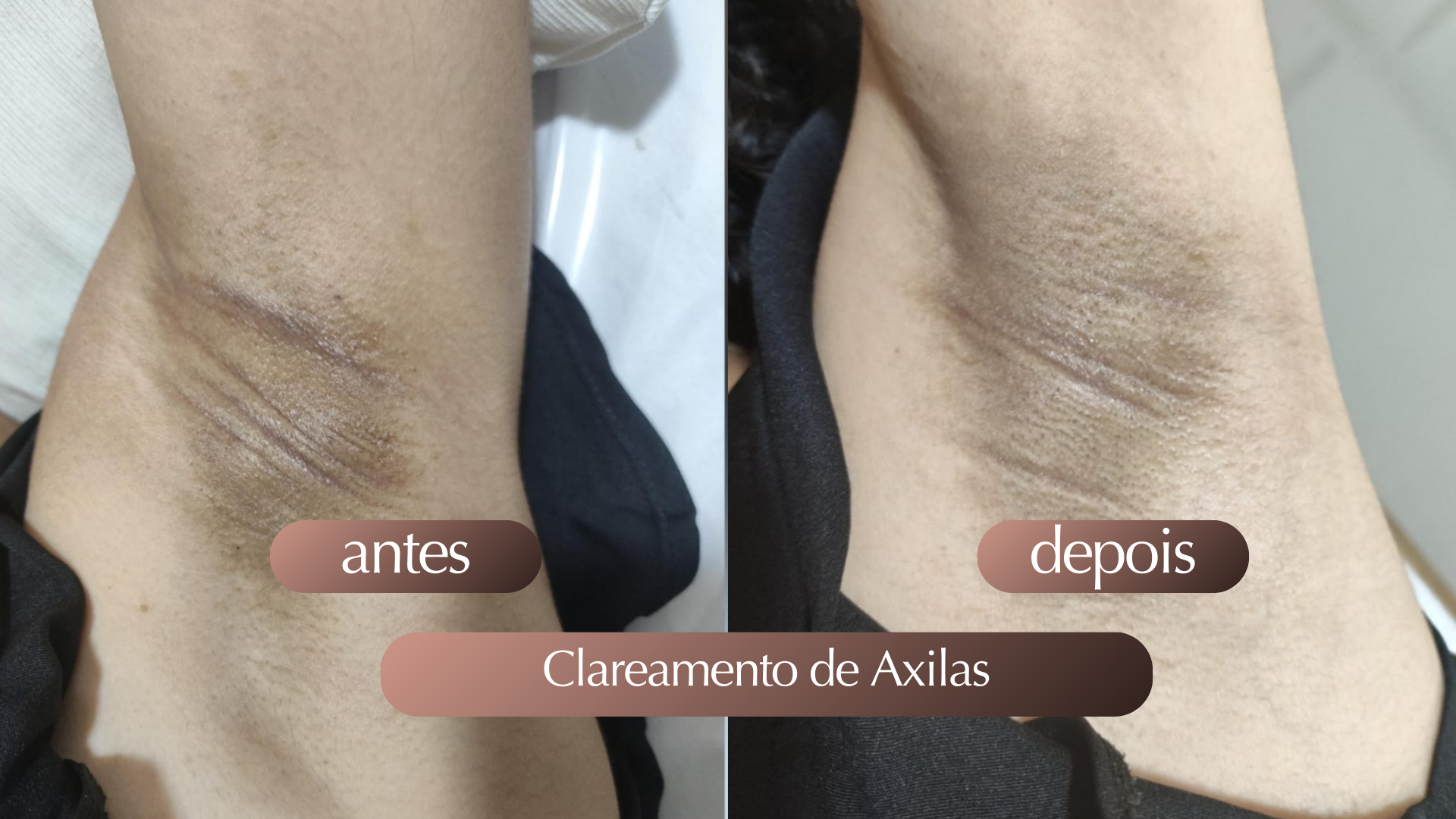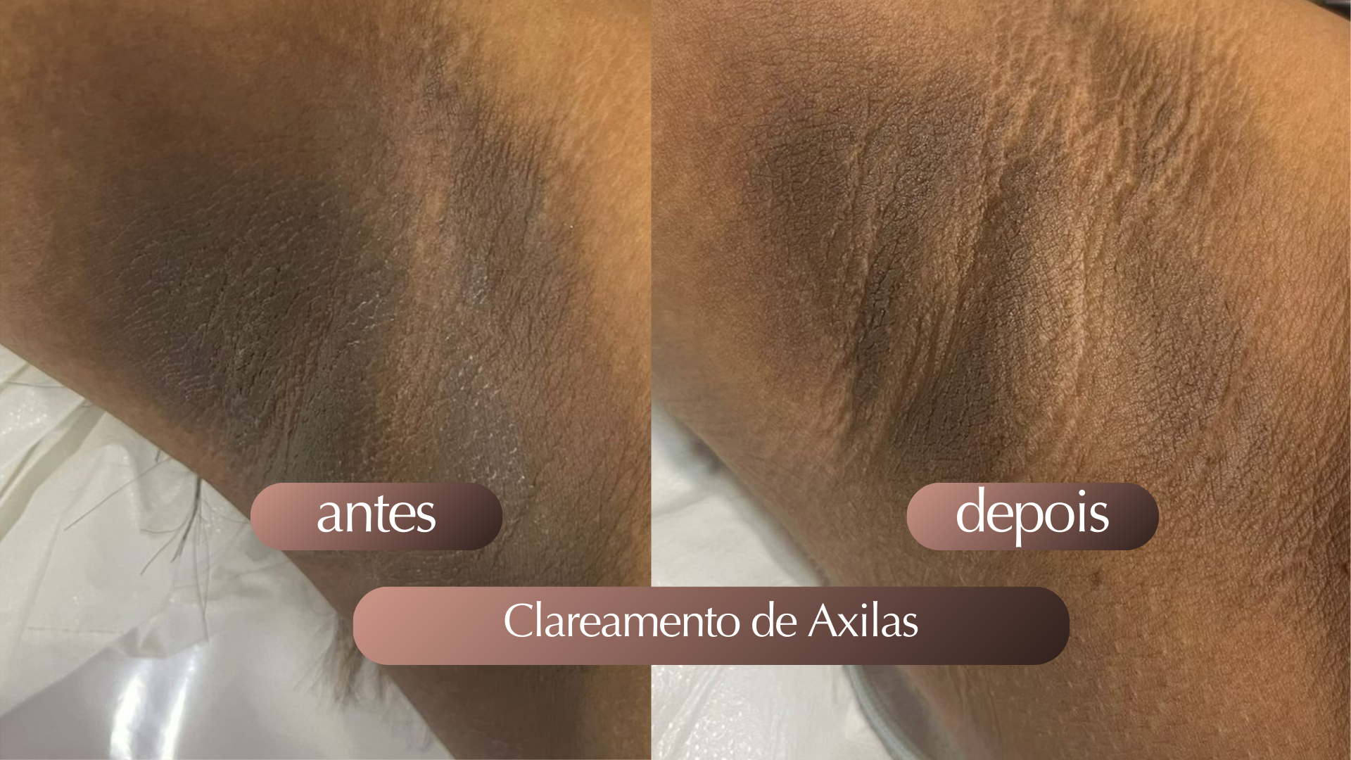 Ideal para axilas, cotovelos, joelhos e parte interna das coxas, oferece um clareamento suave, sem foliculite ou alergias.